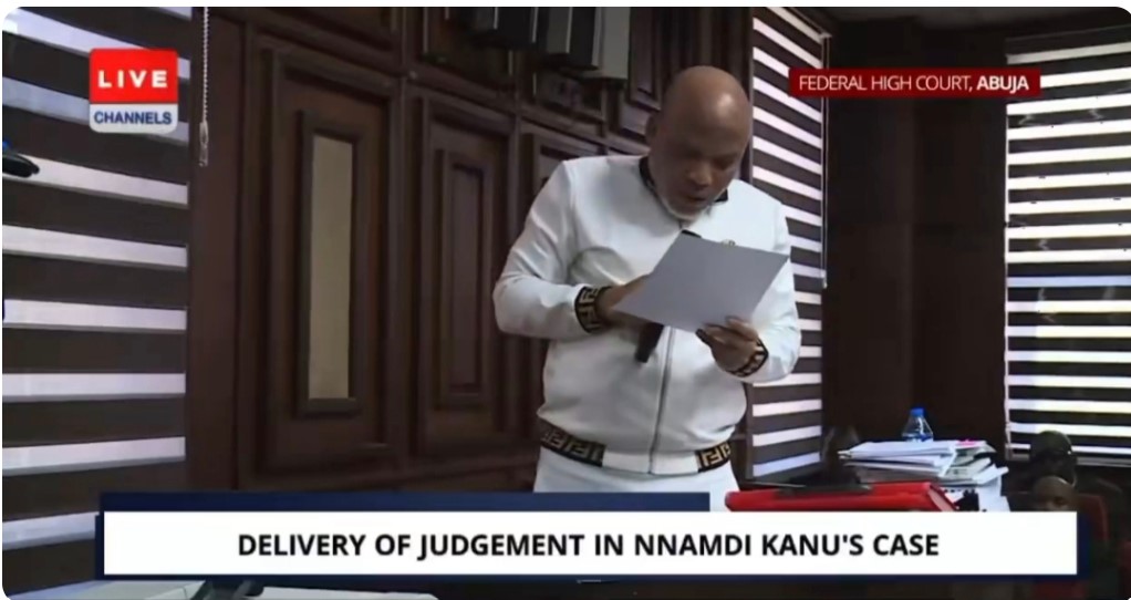 Justice Omotosho ruled that he should not be kept in Kuje prison. He forfeited Nnamdi Kanu’s radio transmitter and barred him from access to social media.